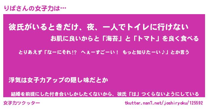 | 恥ずかしいあだ名 | 『プリティーりぱ』『りぱっちょ』 |