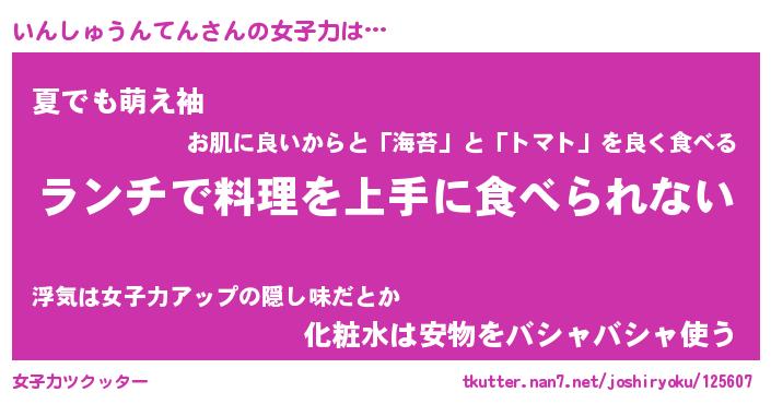 | ヘコむあだ名 | 『いんにー』『なまこ酢』『いんを』 |