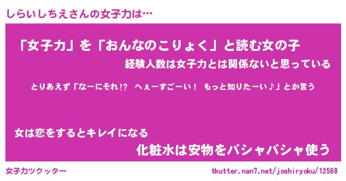 | 女子向けラノベタイトル風あだ名 | 『しらいしちえ姫と円卓の騎士』 |