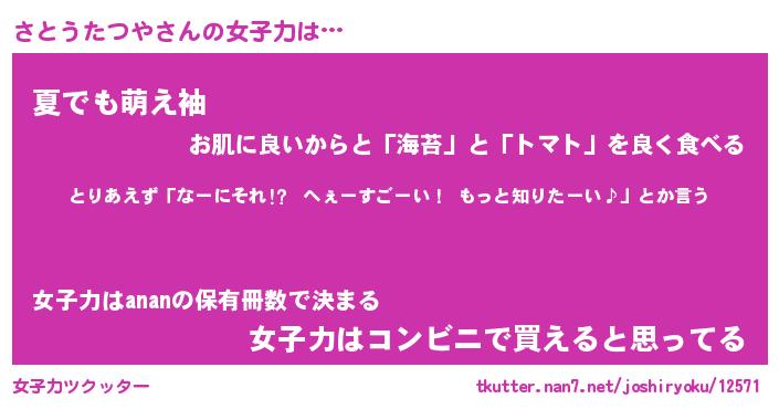 | ヒーロー風カッコイイあだ名 | 『スーパーサトウタツヤ』『天弓騎士サト』 |