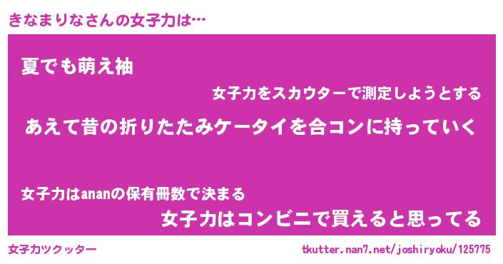 | 男性向けラノベタイトル風あだ名 | 『きなまりなの憂鬱』 |