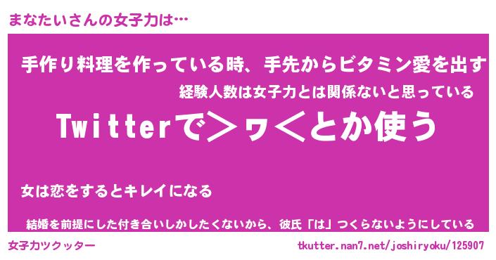 | ヘコむあだ名 | 『まなもー』『つくし』『まなっぺ』 |