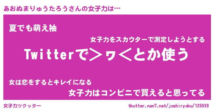| 男性向けラノベタイトル風あだ名 | 『あおぬまりゅうたろうの憂鬱』 |