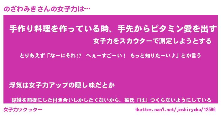 | ヘコむあだ名 | 『のざにゅー』『つくし』『のざ太郎』 |
