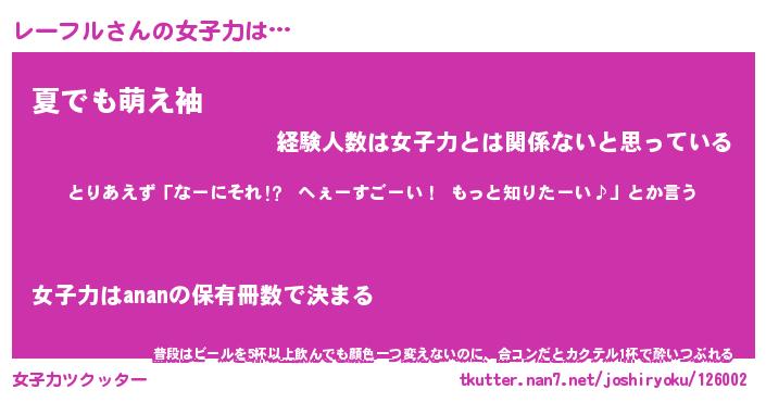 | ファンタジー風あだ名 | 『レーフェル』『エターナルレーフルー』 |