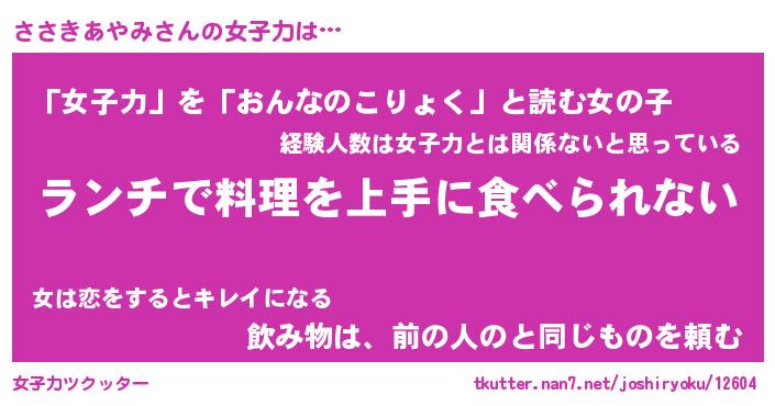 | 恥ずかしいあだ名 | 『プリティーささきあやみ』『ささっちょ』 |
