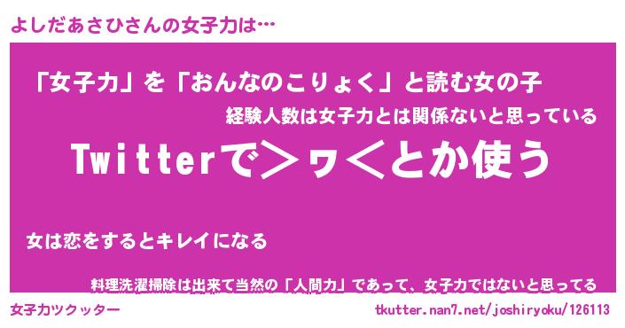 | ポケモン風あだ名 | 『ヨシチュウ』『ヨシダダネ』 |