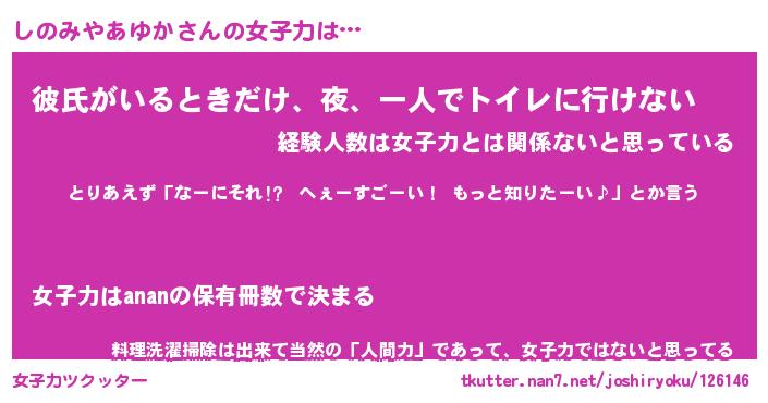 | 意味不明あだ名 | 『ペロリンしのみやあゆか』 |