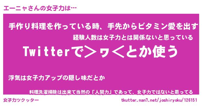 | 意味不明あだ名 | 『ペロリンエーニャ』『永久保存エーニャ』 |