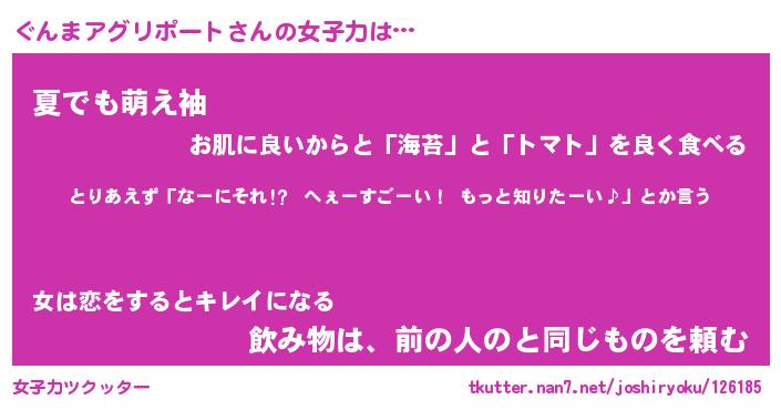 | 女子向けラノベタイトル風あだ名 | 『ぐんまアグリポート姫と円卓の騎士』 |