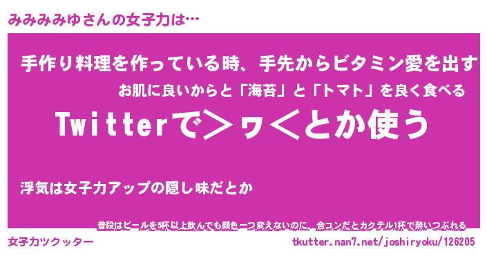 | 胡散臭い通販商品みたいなあだ名 | 『必ず成功する霊験あらたかなお札…その名も「みみみみゆ」』 |