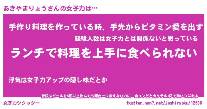 | ヘコむあだ名 | 『あきにー』『豆乳』『あきっ子』 |