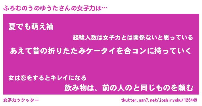 | 女子向けラノベタイトル風あだ名 | 『(仮)ふろむのうのゆうたのやんごとなき事情』 |
