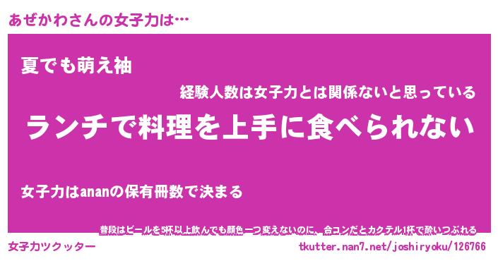 | ファンタジー風あだ名 | 『アゼフェル』『エターナルアゼカワー』 |