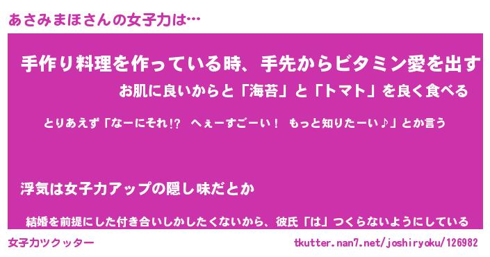| 恥ずかしいあだ名 | 『プリティーあさみまほ』『あさっちょ』 |