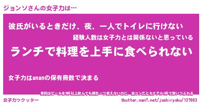 | ヘコむあだ名 | 『ジョもー』『豆乳』『ジョぷりん』 |