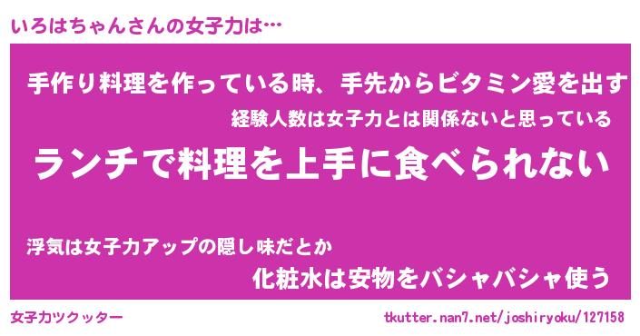 | ヒーロー風カッコイイあだ名 | 『スーパーイロハチャン』『魔戒騎士イロ』 |