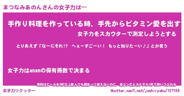 | 料理風あだ名 | 『ネギたっぷりまつなみあのんの南蛮漬け』 |