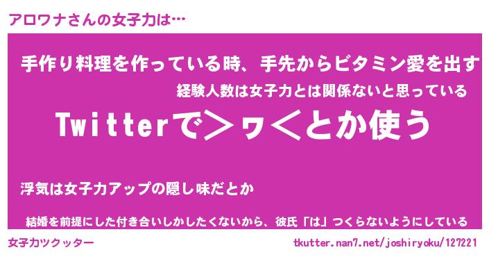 | ファンタジー風あだ名 | 『アロフェル』『エターナルアロワナー』 |