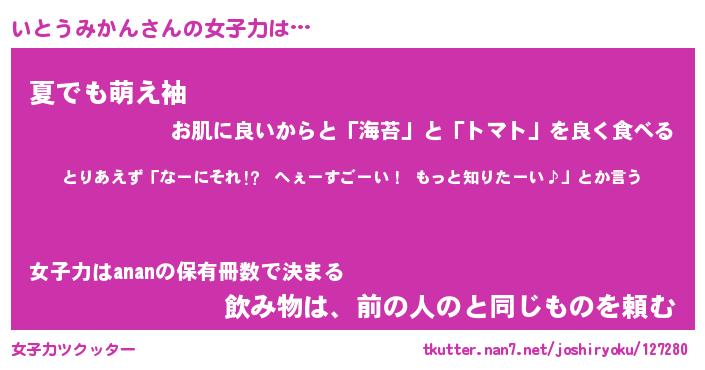 | ヘコむあだ名 | 『いともー』『なまこ酢』『いとっぺ』 |