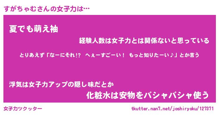| 恥ずかしいあだ名 | 『プリティーすがちゃむ』『すがっちょ』 |