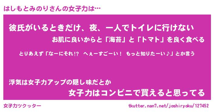 | 女子向けラノベタイトル風あだ名 | 『誰かこのはしもとみのりを説明してください! ~契約から始まるウェディング~』 |