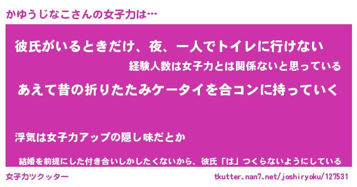 | ヒーロー風カッコイイあだ名 | 『スーパーカユウジナコ』『魔戒騎士カユ』 |