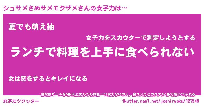 | 胡散臭い通販商品みたいなあだ名 | 『億万長者になれる水晶球…その名も「シュサメさめサメモクザメ」』 |