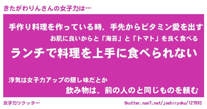 | 女子向けラノベタイトル風あだ名 | 『誰かこのきたがわりんを説明してください! ~契約から始まるウェディング~』 |
