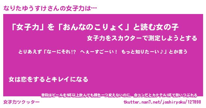 | 恥ずかしいあだ名 | 『プリティーなりたゆうすけ』『なりちん』 |