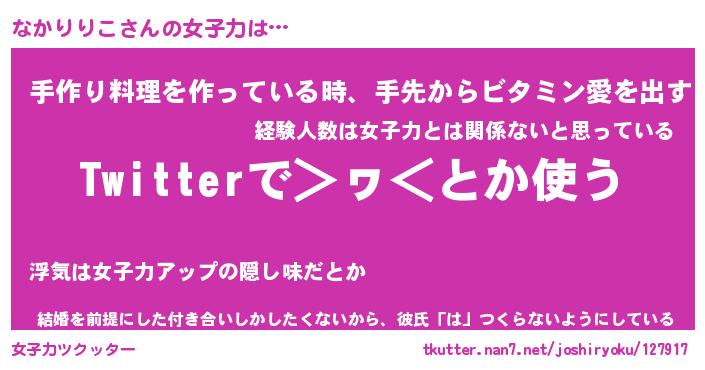| 恥ずかしいあだ名 | 『プリティーなかりりこ』『なかっちょ』 |