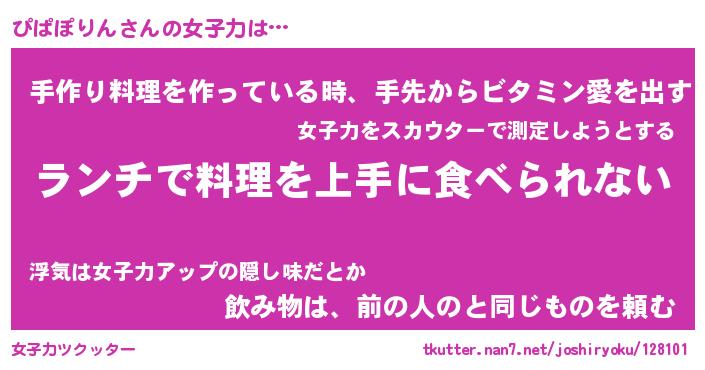 | 料理風あだ名 | 『ネギたっぷりぴぱぽりんの南蛮漬け』 |
