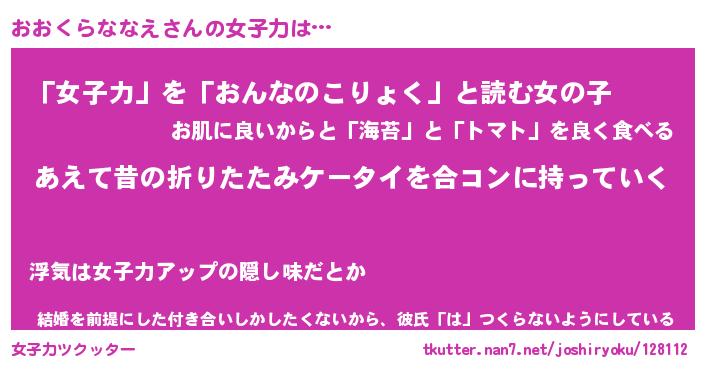 | 胡散臭い通販商品みたいなあだ名 | 『必ず成功する水晶球…その名も「おおくらななえ」』 |