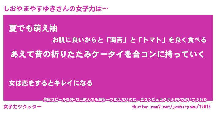 | ヘコむあだ名 | 『しおふぇ~』『なまこ酢』 |