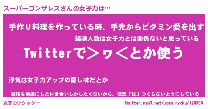 | 女子向けラノベタイトル風あだ名 | 『スーパーゴンザレス姫と円卓の騎士』 |