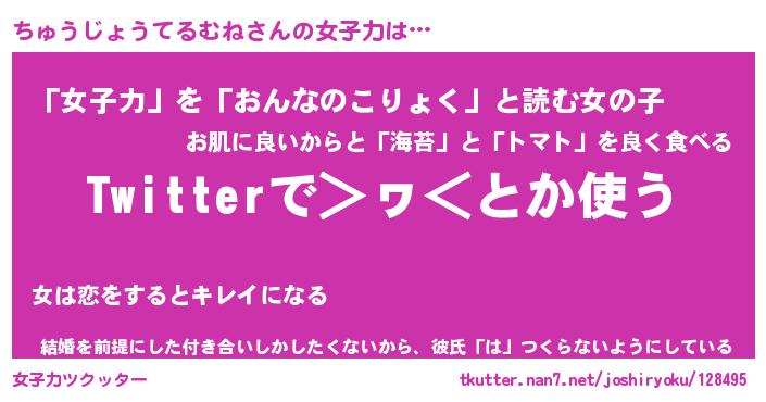 | 男性向けラノベタイトル風あだ名 | 『ちゅうじょうてるむねの憂鬱』 |