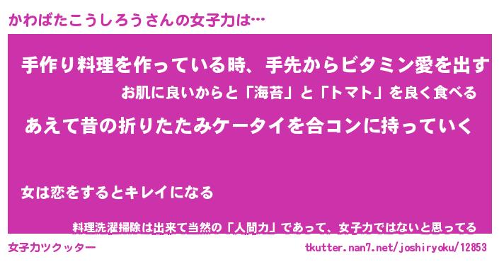 | ヘコむあだ名 | 『かわもー』『牛乳』『かわっぺ』 |