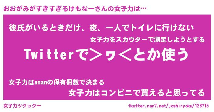 | 意味不明あだ名 | 『ペロリンおおがみがすきすぎるけもなー』 |
