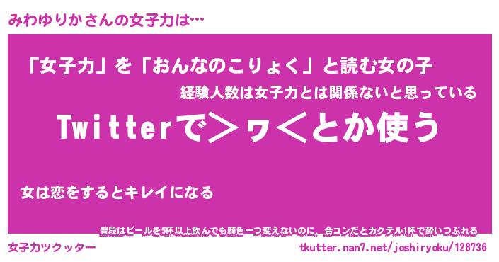 | ファンタジー風あだ名 | 『ミワフェル』『エターナルミワユリカー』 |