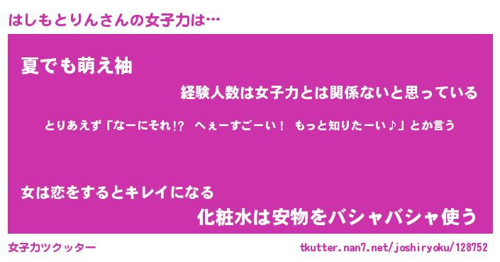 | 肩書あだ名 | 『はしもとりんCEO』『はしもとりん大統領』 |