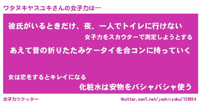 | 女子向けラノベタイトル風あだ名 | 『(仮)ワタヌキヤスユキのやんごとなき事情』 |