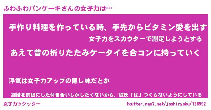 | 料理風あだ名 | 『ほっこり♪ふわふわパンケーキの味噌そぼろ煮』 |