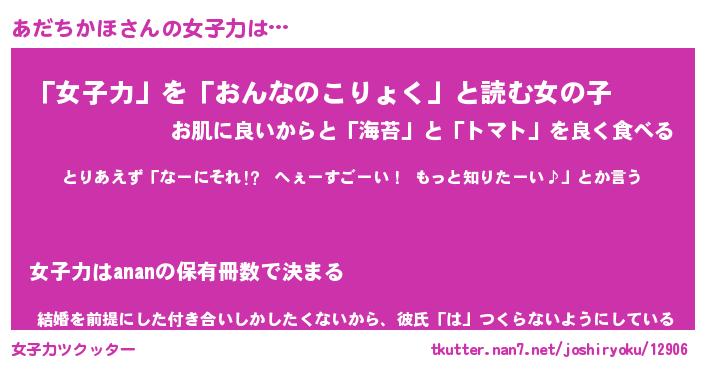 | 胡散臭い通販商品みたいなあだ名 | 『億万長者になれるブレスレット…その名も「あだちかほ」』 |