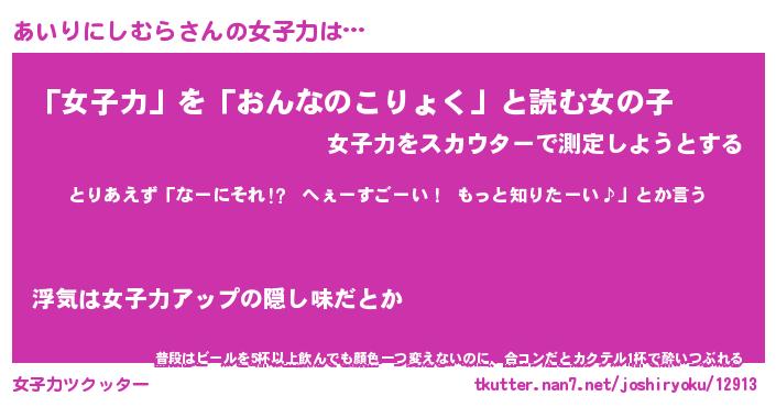 | 胡散臭い通販商品みたいなあだ名 | 『億万長者になれる水晶球…その名も「あいりにしむら」』 |