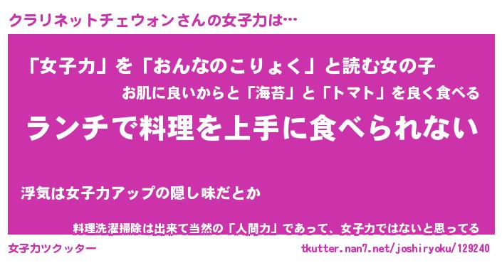 | 料理風あだ名 | 『ネギたっぷりクラリネットチェウォンの南蛮漬け』 |