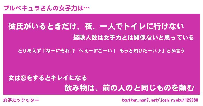 | 恥ずかしいあだ名 | 『プリティーブルぺキュラ』『ブルっちょ』 |