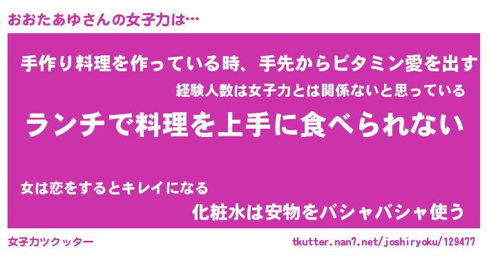 | 肩書あだ名 | 『おおたあゆCEO』『おおたあゆ大統領』 |