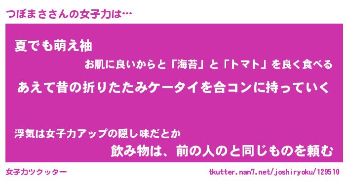 | ヘコむあだ名 | 『つぼっふぃ~』『なまこ酢』 |