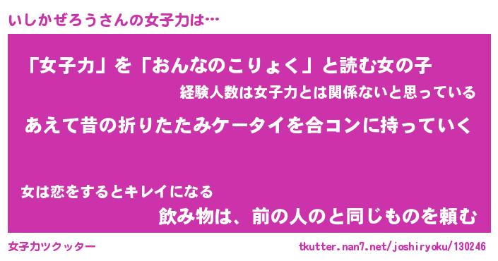 | ヘコむあだ名 | 『いしにゅー』『なまこ酢』『いしを』 |