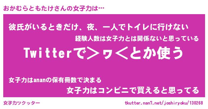 | ヘコむあだ名 | 『おかにゅー』『豆乳』『おかを』 |